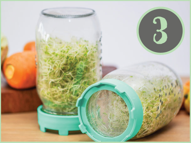 • Soak, rinse, drain—your sprouts are ready in just a few days.